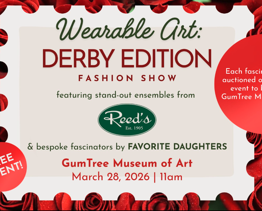 These one-of-a-kind fascinators will be available for auction, with proceeds benefiting the GumTree Museum of Art. It’s the perfect opportunity to find your statement piece for Derby Day while supporting the arts in our community.